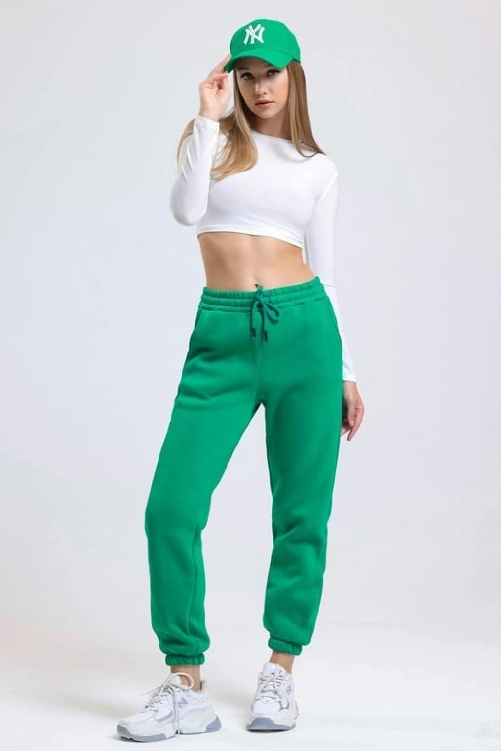 Siz de spor yaparken ya da günlük hayatta şıklığından ödün vermek istemeyenlerdenseniz, 3 iplik şardonlu paça lastikli eşofman yeşil IS001 tam size göre!