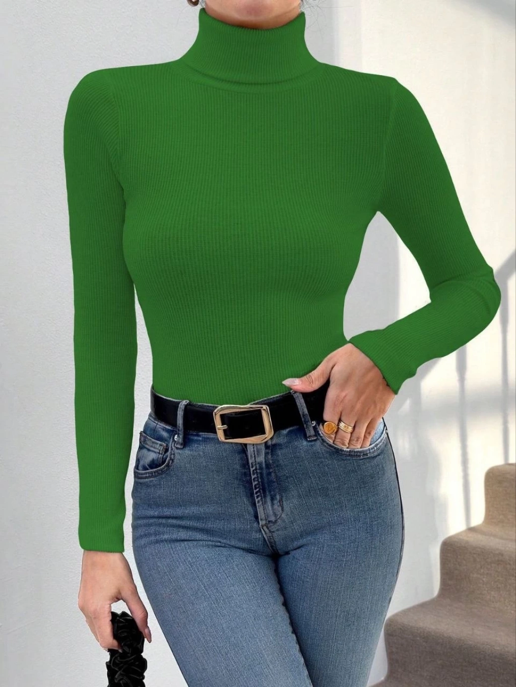 Başıkçı yaka dar kesim kaşkorse kazak yeşil w3103, şıklığı ve rahatlığı bir arada sunar.