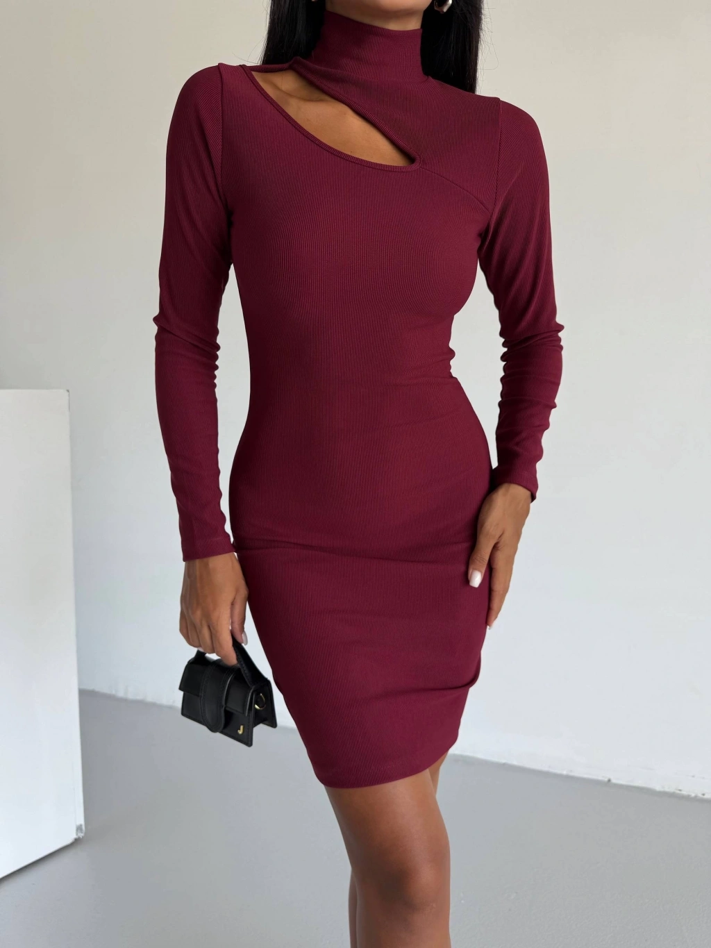Boğazlı Göğüs Dekolteli Elbise bordo rengi ile her türlü kombinle harika bir uyum sağlar. Günlük giyimde veya özel davetlerde tercih edebileceğiniz şık bir seçenektir.