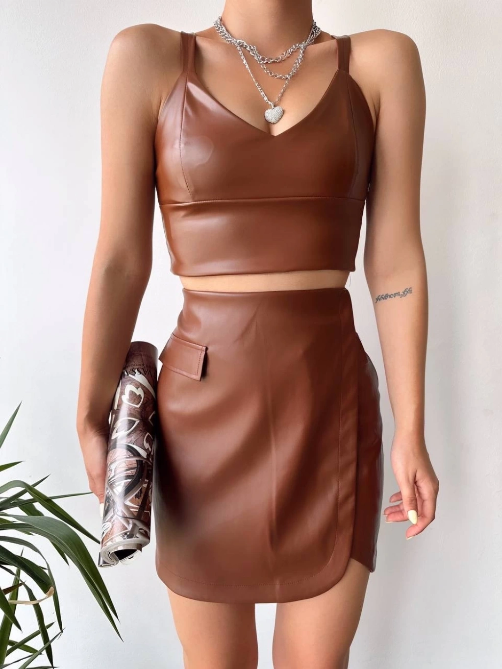 Şıklığı ve rahatlığı bir arada sunan Cep Detaylı Oval Kapaklı Deri Etek ile tarzınızı tamamlayabilirsiniz.