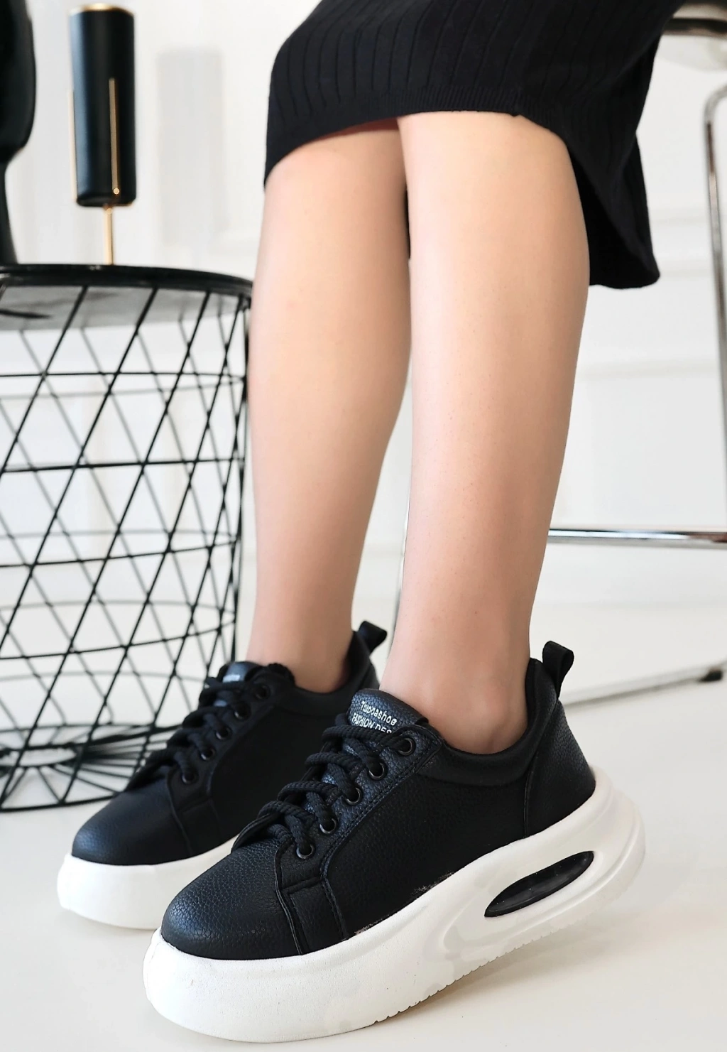 Chris Siyah Cilt Bağcıklı Spor Ayakkabı