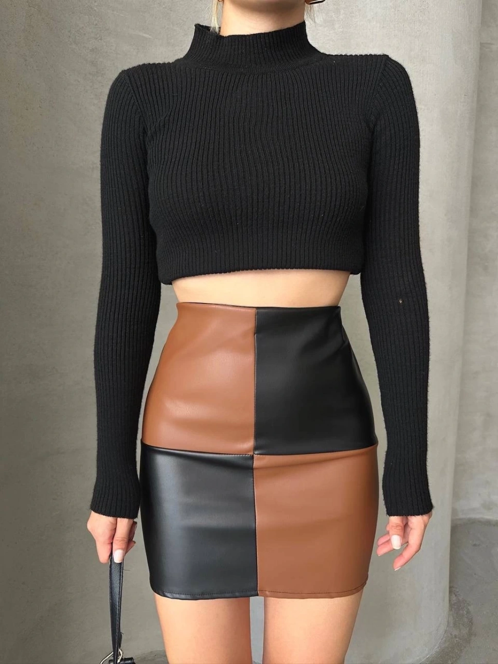 Damalı deri etek siyah ve kahve çift renk karışımı ile orijinal kuzu derisidir yumuşak bir yapıya sahiptir aynı zamanda az da olsa esnektir ve vücuda oturur normal günlerde ve özel günlerde tercih edilebilir bir parça dolabıınızda bulunması gereken parçalardan biri