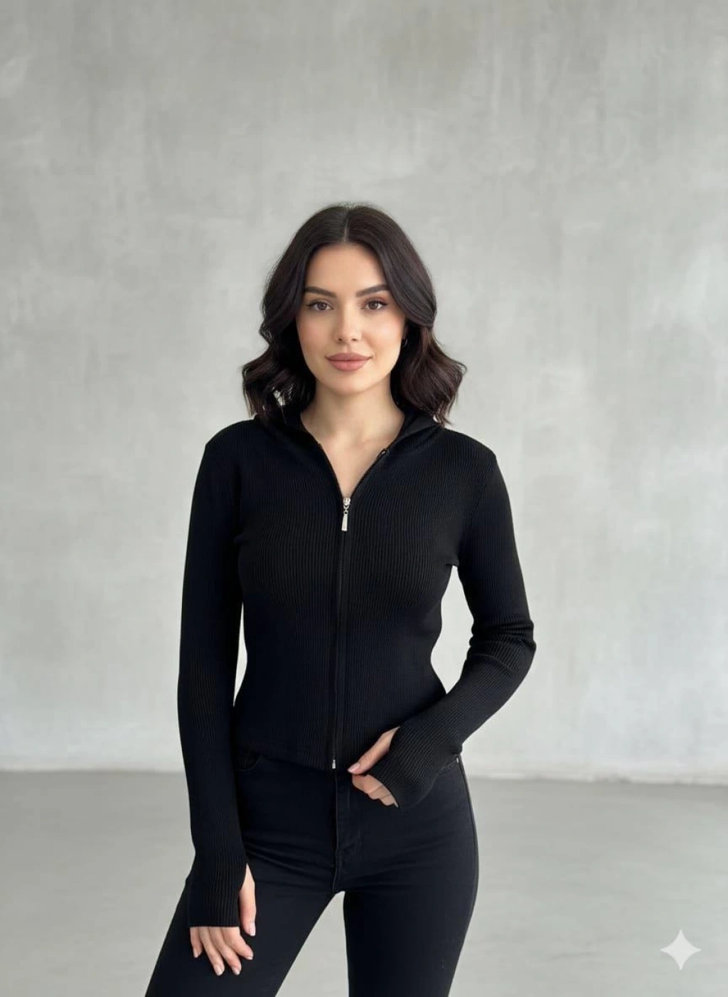 Parmak geçmeli hırka kaşkorse A3898, şıklığı ve rahatlığı bir arada sunar.
