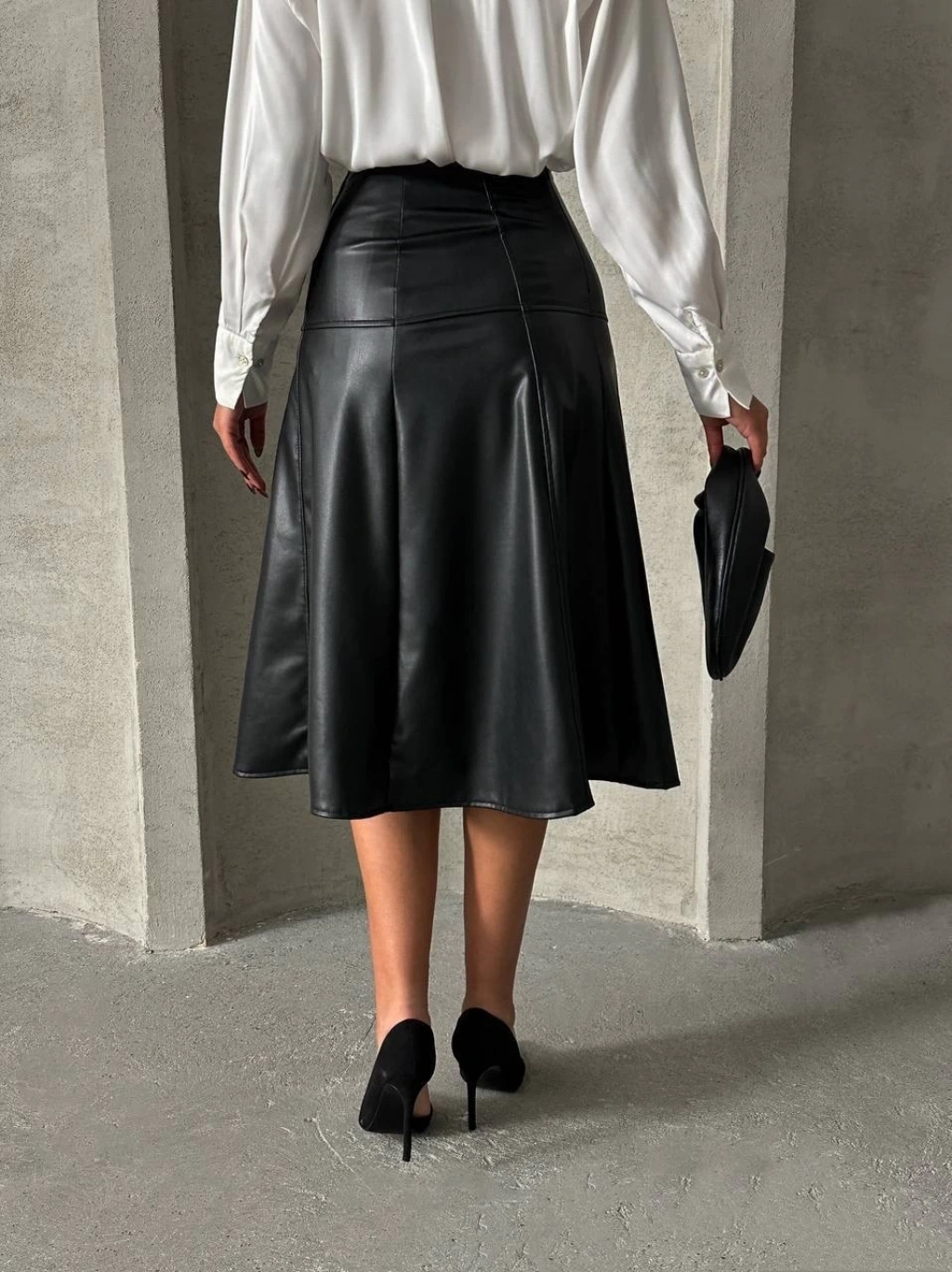 Şıklığı ön planda tutan Komple parçalı deri eteği, gece davetlerinden günlük şıklığa kadar birçok farklı kombinle kullanabilirsiniz.