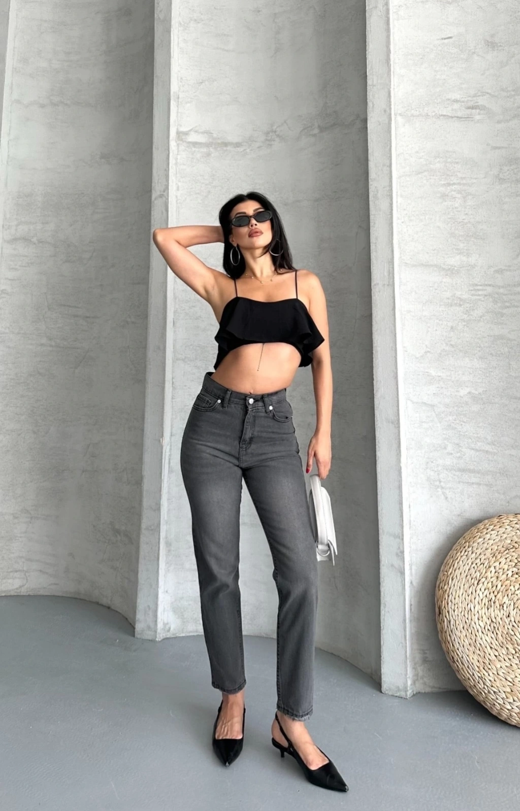 Trendyol’un Mom fit enzim taş yıkama jeans pantolonu füme renk seçeneğiyle gardırobunuzu tamamlıyor. İşte bu şık pantolonun öne çıkan özellikleri: