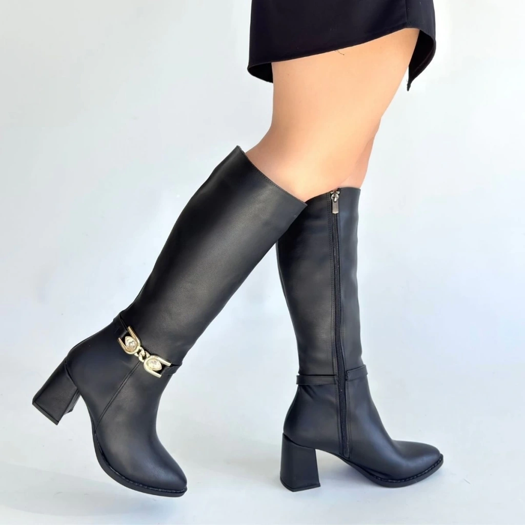 Mooni Siyah Cilt Topuklu Çizme