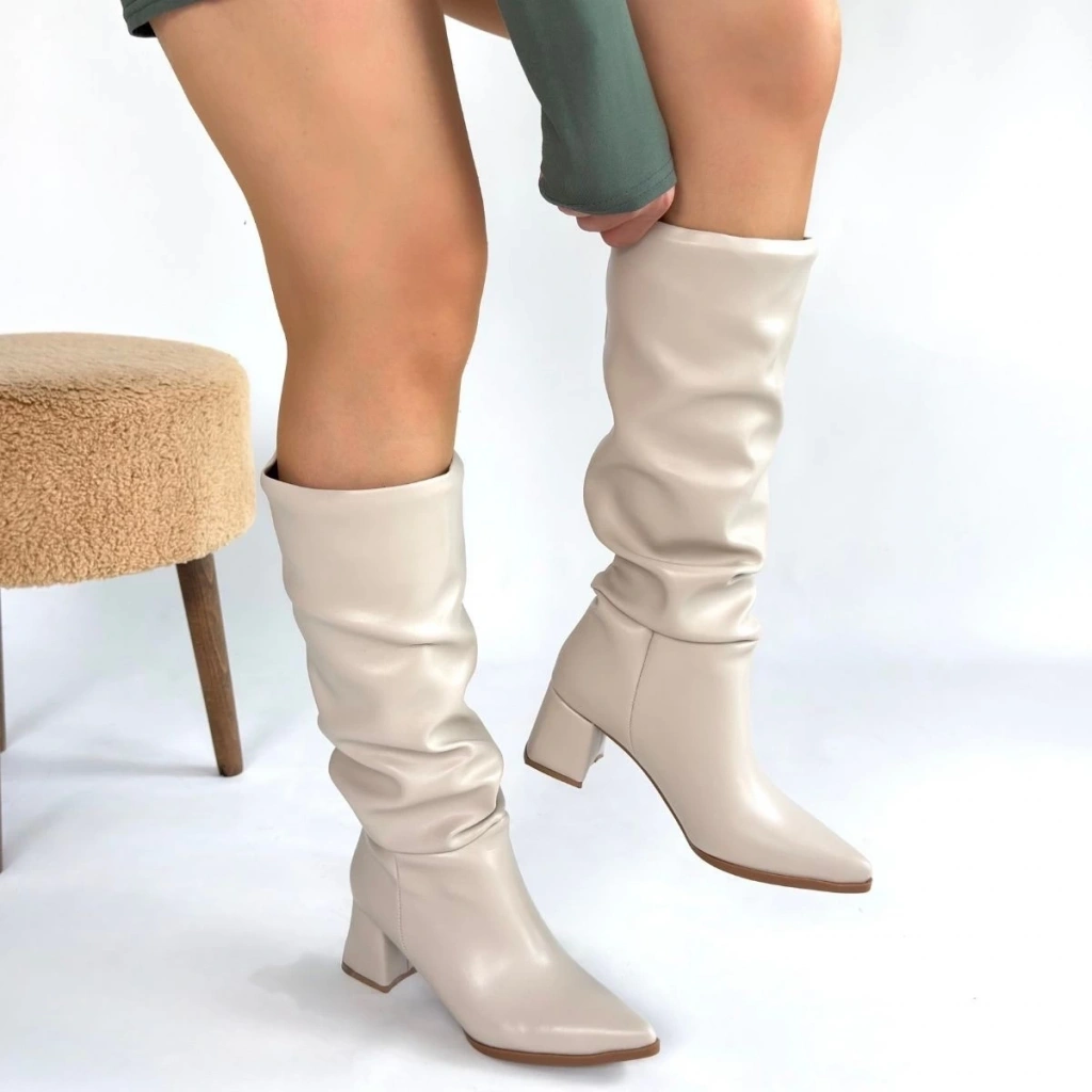 Detay: Topuklu Diz Altı Körüklü Çizme