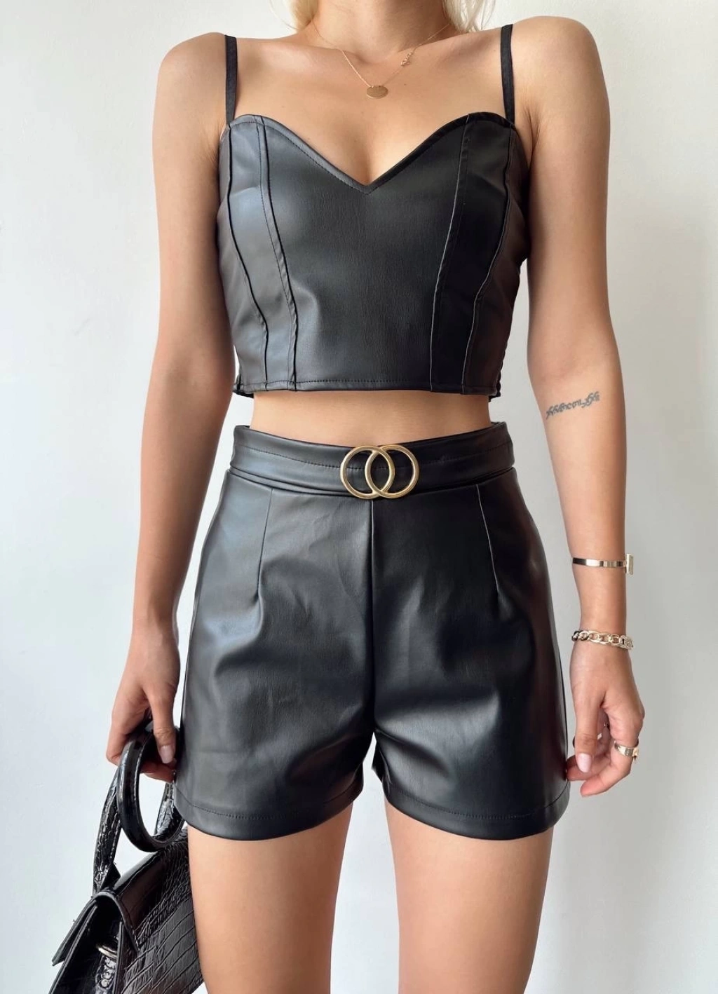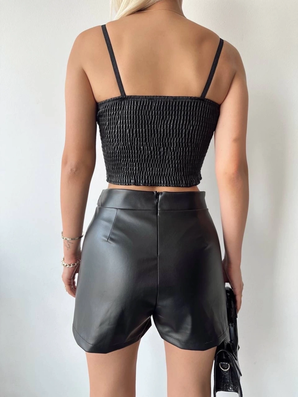 Tokalı deri şort siyah s24444