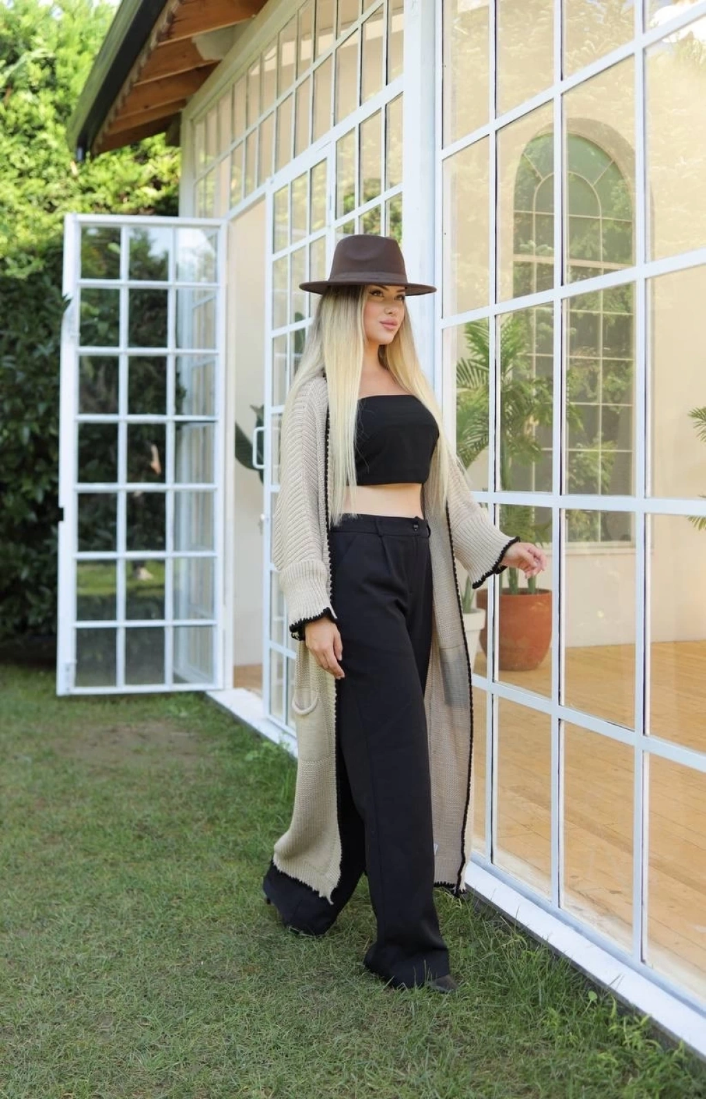 Uzun hırka çoban dikiş bej ile tarzınızı ve konforunuzu ön plana çıkarabilirsiniz.