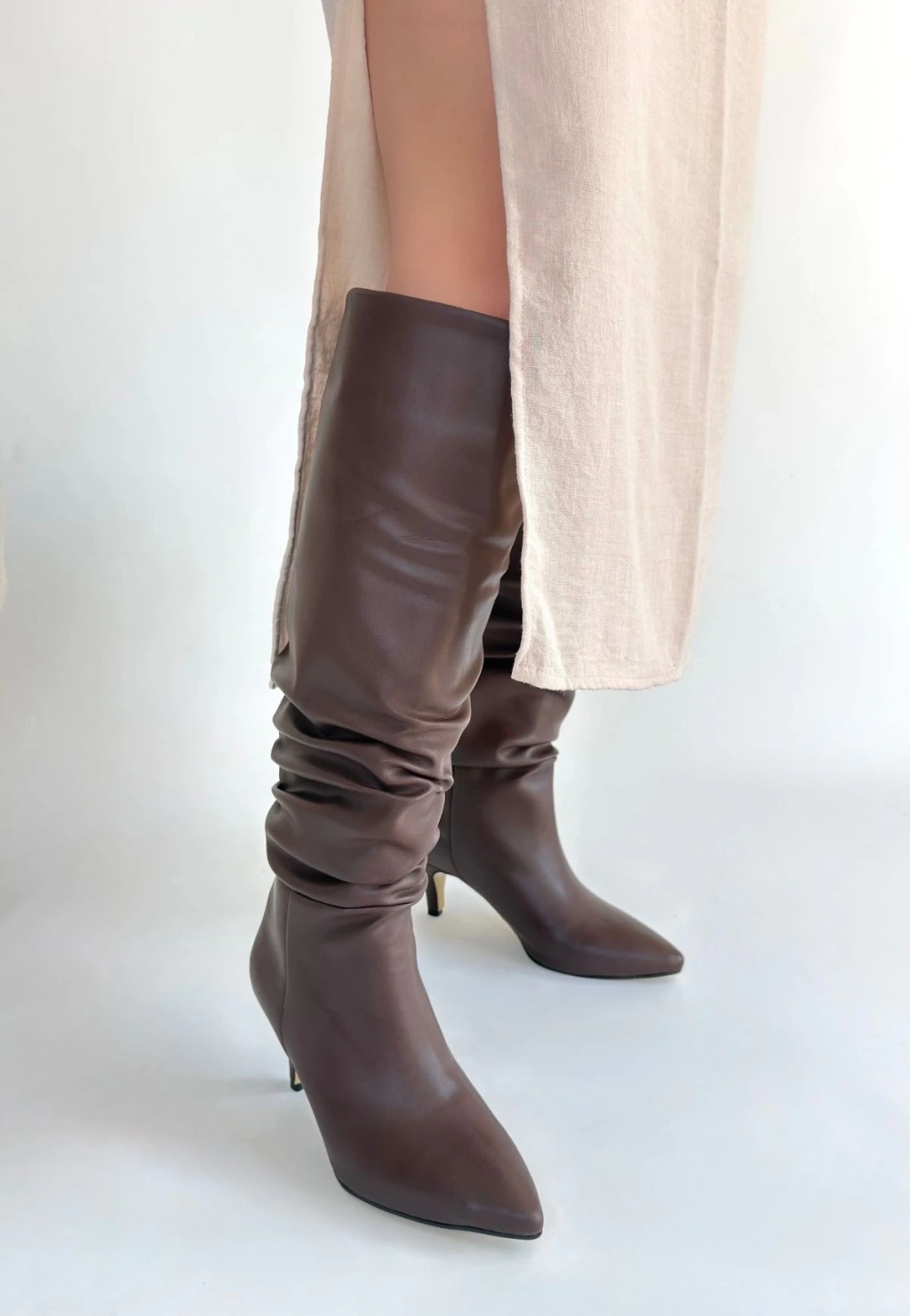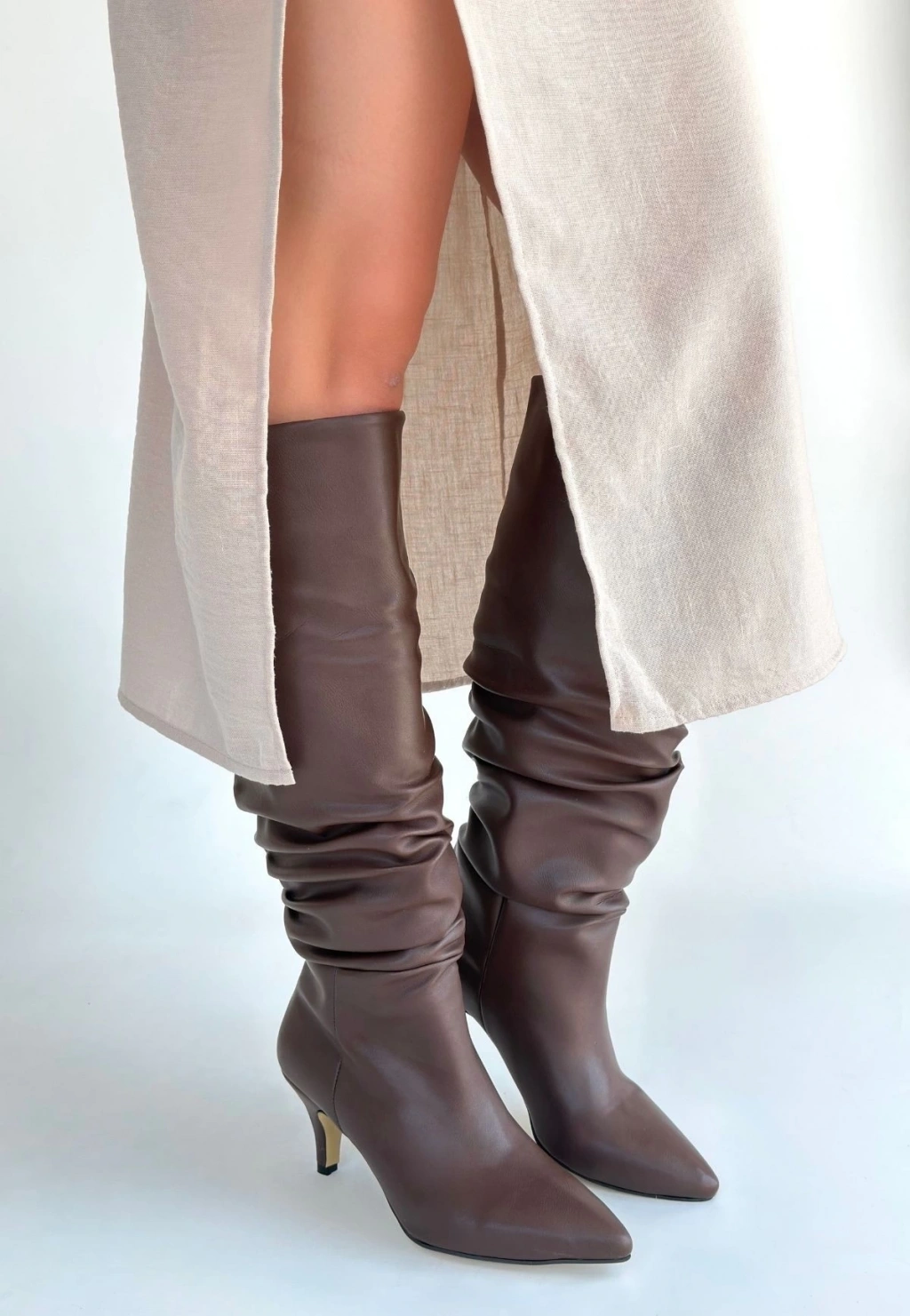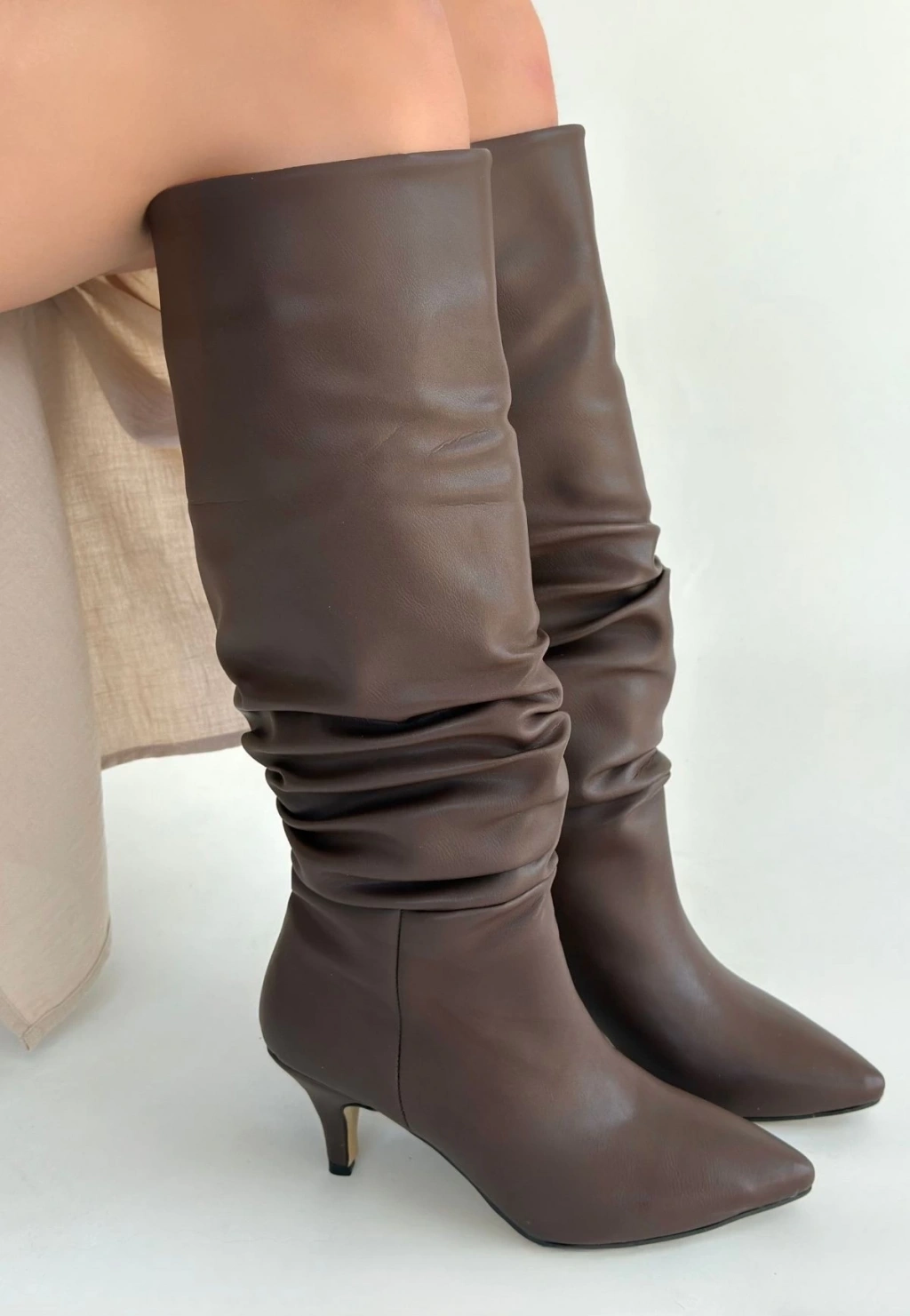 • Zelya Kahverengi Cilt Topuklu Çizme